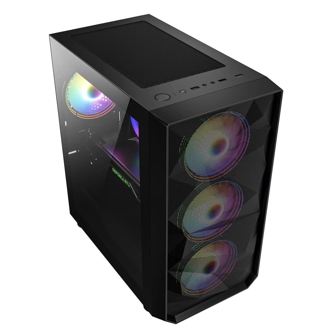 CiT Phantom Mesh Micro-ATX ARGB PC Gaming Case, 4 x ARGB Fans, Tempered Glass Side Panel | Black